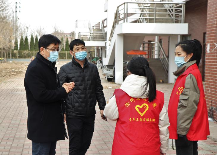 3月20日上午,Beat365党委书记庞更新巡视慰问了参与学校疫情防控巡视督查的党员教师志愿者。