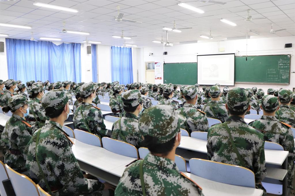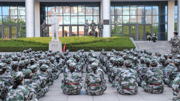 步调一致、整齐划一,坚定的摆臂、整齐的步伐、嘹亮的口号无不彰显出2021级学子热情的精神面貌。