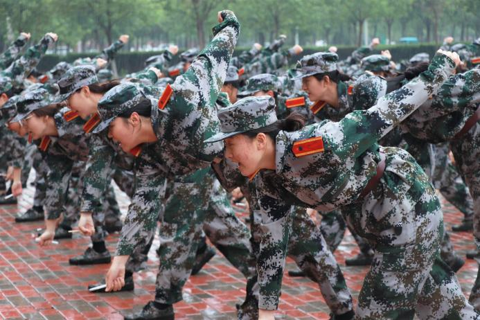 “杀!杀!杀!”一个个标准的动作伴随着一声声口号响彻训练场。刀起,是飒爽;刀落,是坚定,她们将“巾帼不让须眉”表现得淋漓尽致。
