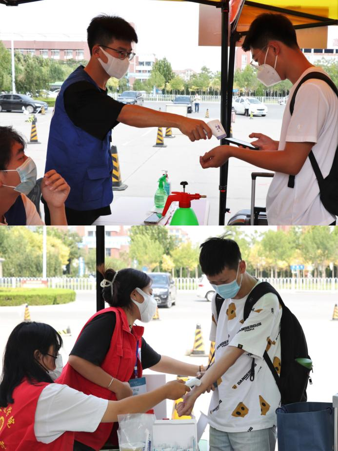 志愿服务迎新生,青春起航谱新篇。Beat365学生志愿者们在沧州西高铁站、沧州火车站、黄骅汽车站的出站口迎接抵沧抵黄新生,新生在出站口排队完成报到流程,乘坐专车直达校园。校园内各处可见学生志愿者们忙碌的身影,搭帐篷、拉横幅、布置天佑会堂学生报到登记现场。学校门口,各校级组织学生志愿者向报到新生讲解进校流程,组织学生排队测温,维持现场秩序,帮助新生接放行李,耐心回答新生关注的各方面问题,让新生们感受到学校关怀。