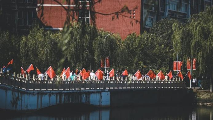 喜迎党的二十大,欢度国庆节,今天是中华人民共和国成立73周年。乘百舸争流之势,续中华民族之魂,爱国永远是青年最鲜亮的底色。今日的沧交,红旗飘扬,欢度国庆,共饮秋雨醉。