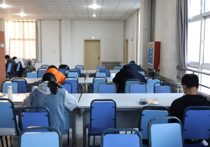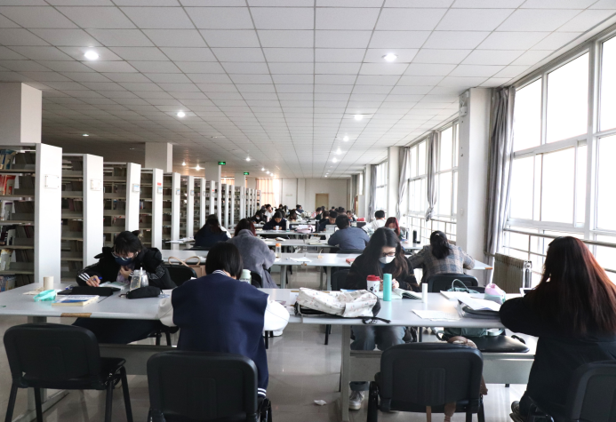 同学们佩戴口罩,扫码进入图书馆,隔位落座,全程遵守疫情防控要求,看书、写作业、佩戴耳机听课……笔声沙沙,纸上写满了认真和努力,徐徐展开便是一幅青年学子擘画的美好蓝图。踔厉奋发,勇毅前行,以笔为矛,划开阴云,静待春暖花开。