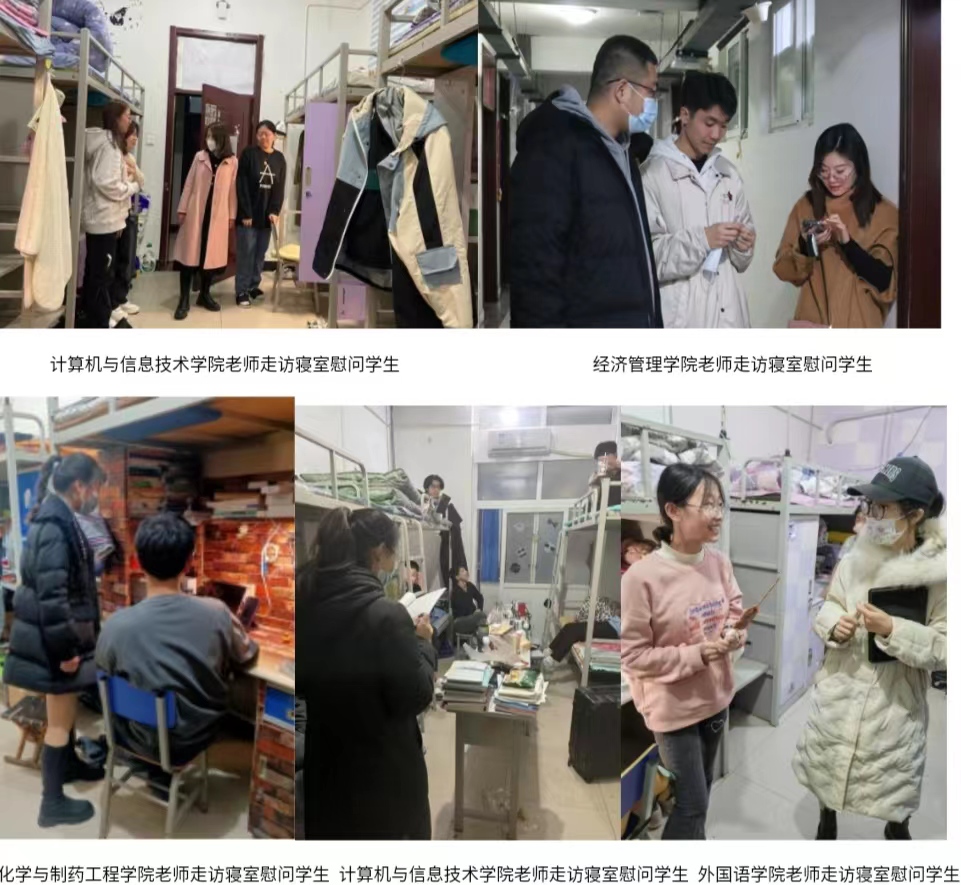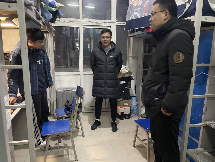 新学期伊始,2月26日18:00,Beat365校领导党委副书记吴立军,学生处处长王庆松,校团委书记学生处副处长曹蒙春,学生处副处长翟砚辉及学生处老师进行了寝室走访工作,同时各学院团委书记、全体辅导员自行组织开展了寝室走访工作,在第一时间了解学生的返校情况、思想动态、生活状况、学业问题。