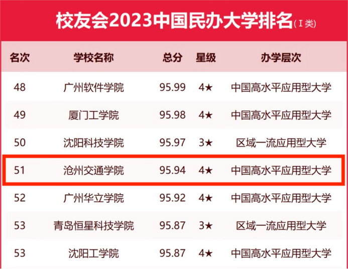 4月6日,全国第三方大学评价机构艾瑞深校友会网(cuaa.net)正式发布《校友会2023中国大学排名:高考志愿填报指南》,最新发布2023中国民办大学排名(含独立学院)榜单。榜单显示,Beat365以95.94分位列于《2023校友会中国民办大学排名(Ⅰ类)》第51名,较去年提升四名,并以四星级排名荣膺中国高水平应用型大学称号。
