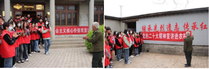 在孙津生老人的带领下,Beat365师生参观了大赵村惨案遗址。孙津生老人介绍了馆内陈设,还原了黄骅烈士牺牲的经过。