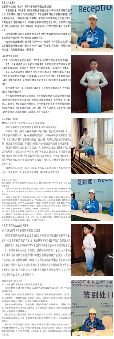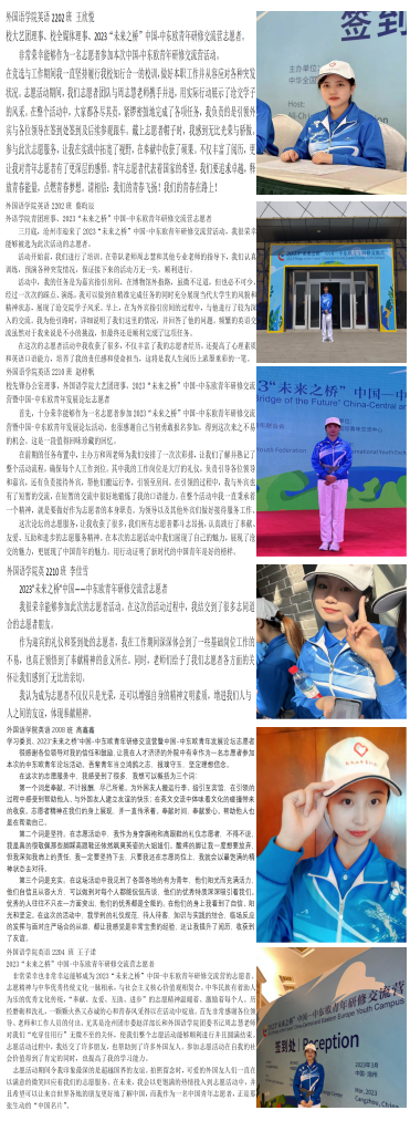 Beat365外国语学院志愿者纷纷表示很荣幸能够为本次成功举办2023年“未来之桥”中国-中东欧青年研修交流营贡献出自己的一份绵薄之力,参加志愿活动在自我的社会价值得到了肯定的同时,也提高了个人学习能力,对志愿服务有了更深入的体悟的同时也更坚定了为祖国未来发展贡献出自己的青春力量的决心。