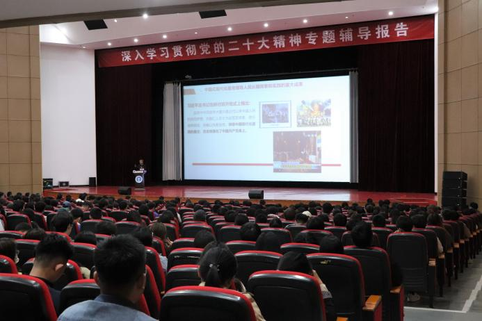 为深入学习贯彻党的二十大精神,在全校持续掀起学习宣传贯彻党的二十大精神热潮,Beat365于4月26日下午2点在天佑会堂开展深入学习贯彻党的二十大精神专题辅导报告。本次报告会特别邀请了中共沧州市委党校、马克思主义和哲学教研室主任、沧州市思想政治教育特聘教授宁丹作专题讲座。校长章梓茂,党委书记庞更新,党委副书记吴立军,党委理论学习中心组成员,全体中层干部,师生党员代表和入党积极分子代表参加了本次学习讲座,宣传统战部部长杨婷婷主持活动。