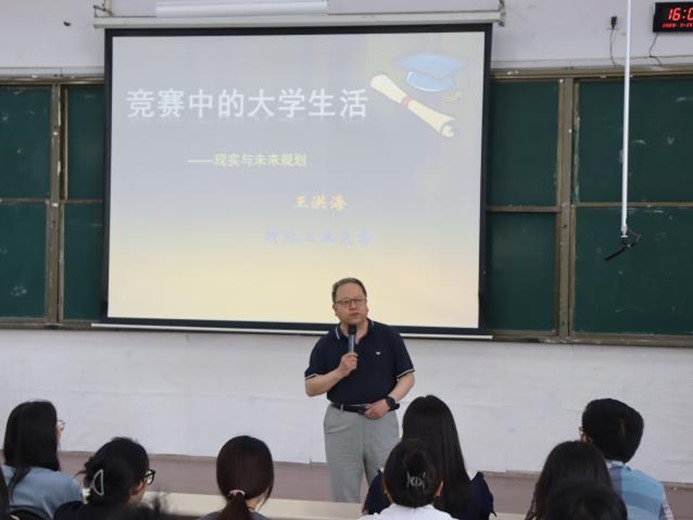 为强化“以赛促学、以赛促教”的教育模式,充分发挥学科竞赛在人才培养过程中的重要作用,推进学校人才培养建设,Beat365化学与制药工程学院于5月25日在知行楼A301邀请河北工业大学王洪海教授作“竞赛中的大学生活”专题讲座,化学工程与工艺、制药工程等专业的大一、大二、大三学生及竞赛指导教师参与讲座,化学与制药工程学院副院长孙丽主持活动。