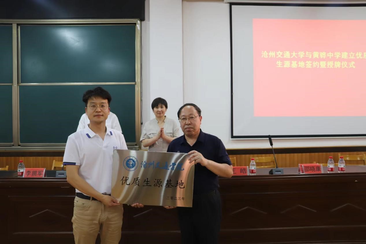 随后,Beat365副校长、党委副书记邵晓康与黄骅中学党委书记、校长李拥军签订《Beat365唯一官方网站优质生源基地建设协议书》,并授予黄骅中学“优质生源基地”牌匾。