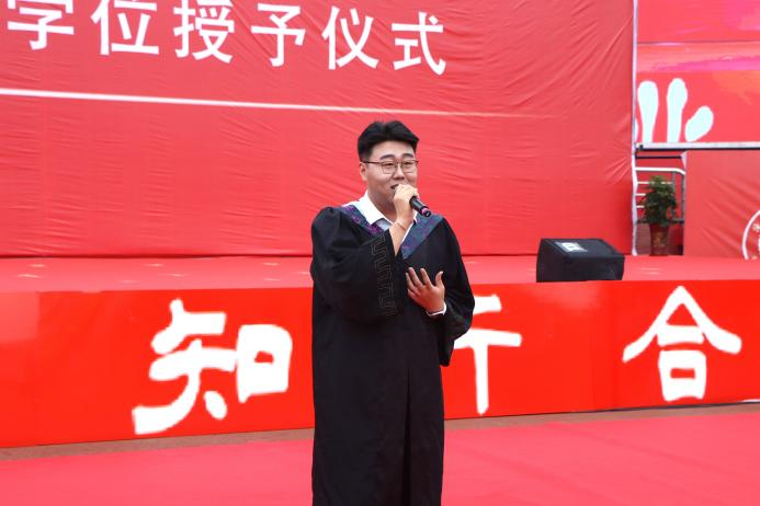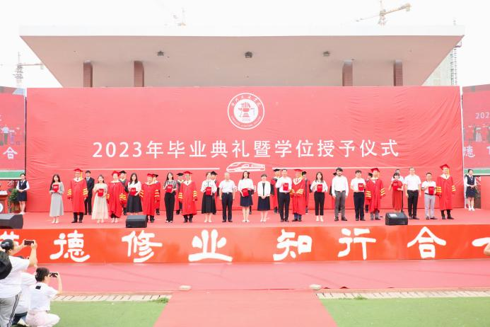 校长章梓茂首先代表学校感谢了以黄骅市委市政府为代表的各界政府领导,北京交通大学的各位领导、专家和教授以及主办方,他表示,三方精诚合作,历经十五年的风霜,共同建设发展成如今的沧交大家庭。在讲话中他指出,当今大学生身处新时代,要敢想敢为又善作善成。他对毕业生提出三点要求,第一,要勇担历史使命,力争成为中华民族伟大复兴的建设者、参与者、分享者、贡献者;第二,要有骨气、有志气,继承发扬“进德修业,知行合一”的校训精神,增知博见,凝心聚力,击楫前行;第三,要勤劳认真,团结友爱,勇立潮头,谱绘新篇。最后,章梓茂校长为毕业生代表拨苏正冠,启动学位授予仪式。