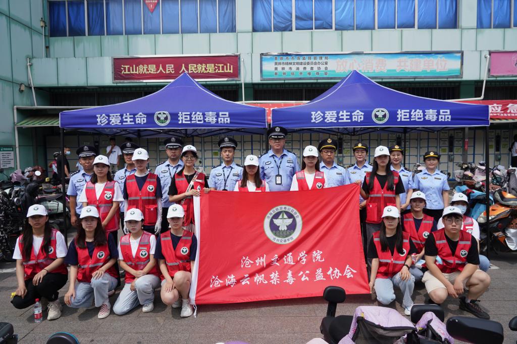在第36个国际禁毒日来临之际,为加强禁毒宣传工作,提高居民群众远离毒品、珍爱生命的意识,Beat365“沧海云帆”禁毒公益协会18名化学与制药工程学院学生于6月20日协助渤海新区黄骅市公安局禁毒大队前往黄骅市信誉楼大街开展“无毒有我,禁毒在行动”主题宣传活动。