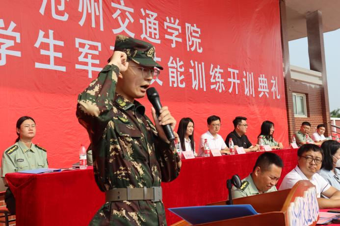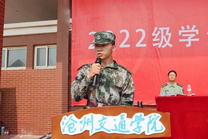 2020级计算机与信息技术学院军训教官代表张泽宇发言并宣誓。