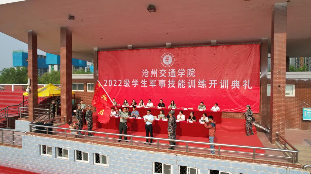 党委副书记吴立军为2022级军训团授旗,军训团团长王庆松接旗。