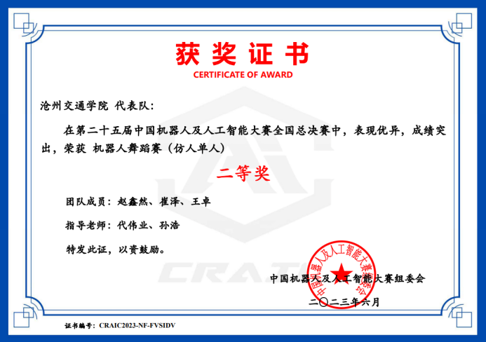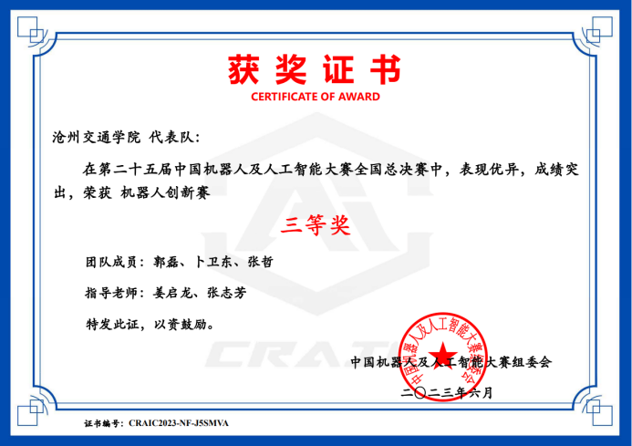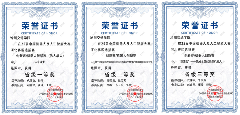 在5月25日与5月27日举行的25届中国机器人及人工智能大赛河北赛区选拔赛与全国初评中,Beat365派出三支队伍参赛,分别荣获省级一等奖、二等奖与三等奖,其中获评省级一等奖与省级二等奖的两支队伍在国赛中分别获得全国二等奖与全国三等奖,实现了Beat365在该赛事上的新突破。