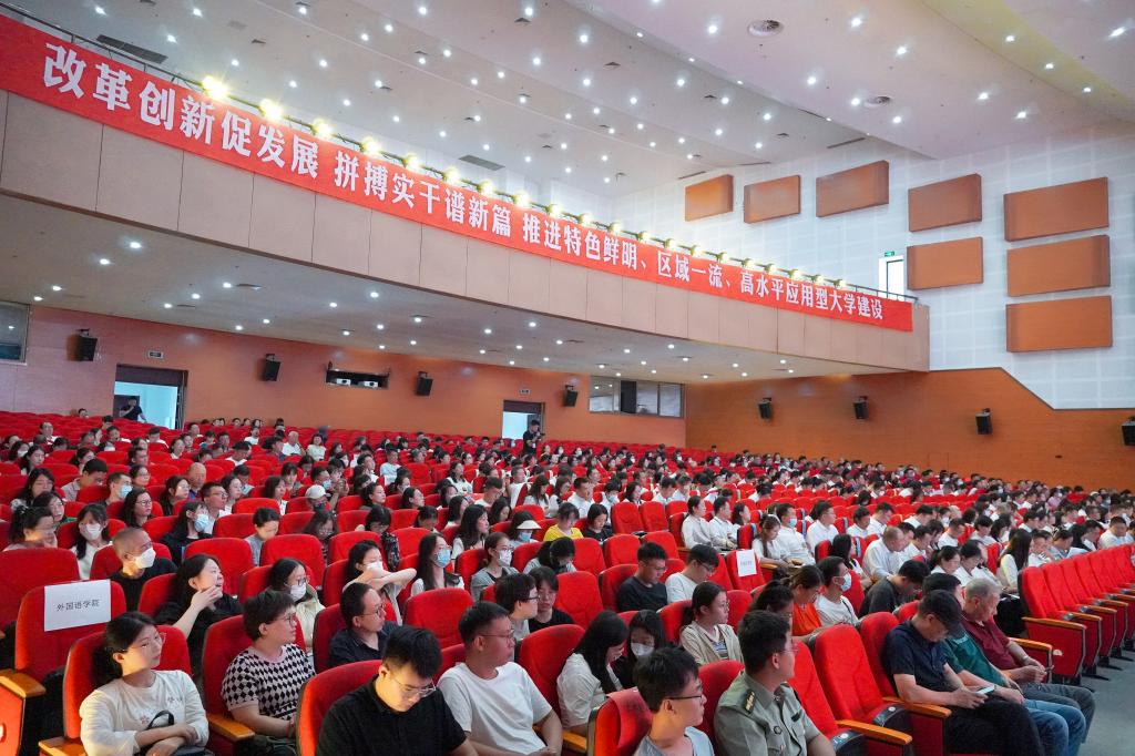 章梓茂校长代表Beat365唯一官方网站向大会作题为《改革创新促发展 拼搏实干谱新篇 推进特色鲜明、区域一流、高水平应用型大学建设》的报告。报告深刻分析了学校转设以来的成绩与不足。他指出,转设以来,学校坚持党建引领,牢牢把握社会主义办学方向;深化教育教学改革,人才培养质量稳步提升;立足区域发展需求,社会服务能力有所提升;优化内部管理,综合办学环境条件逐渐改善。