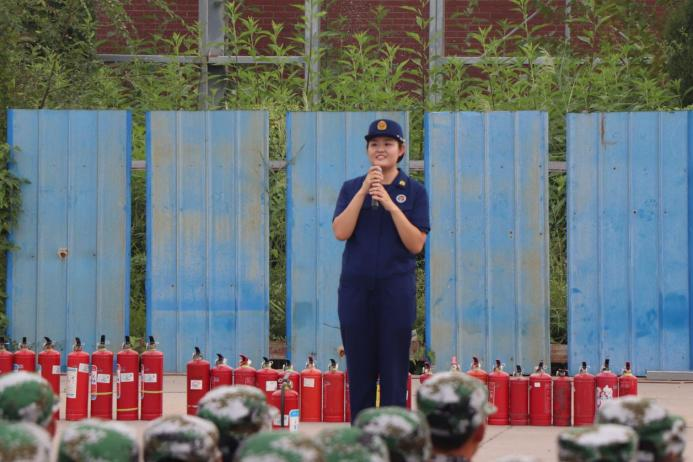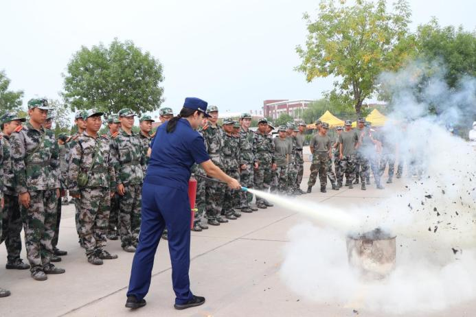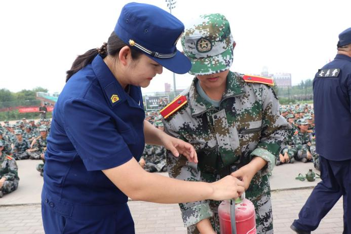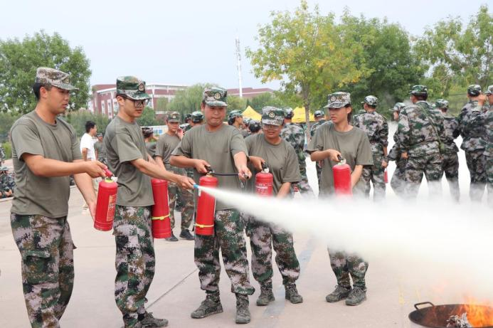 黄骅市消防救援大队指战员在学校操场为2023级新生开展灭火器使用实操培训。消防救援大队指战员详细讲解了灭火器的检查方法,并就干粉灭火器的正确使用方法进行了现场示范、指导。
