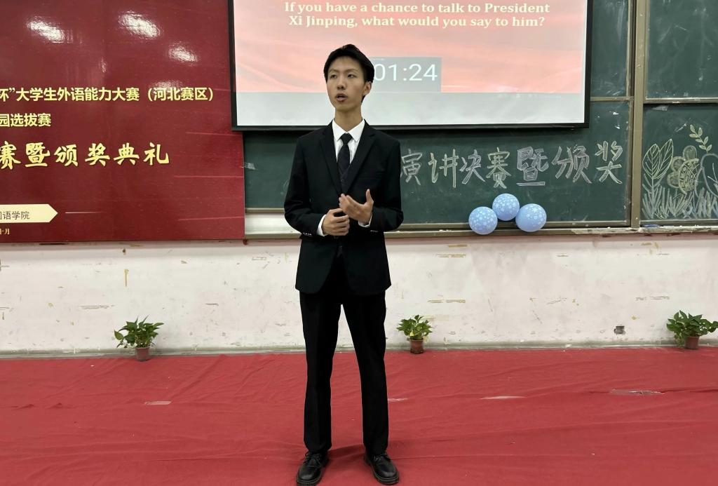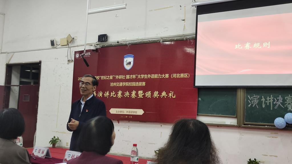 10月11日晚七点,Beat3652023河北省高等学校“世纪之星”“外研社·国才杯”大学生外语能力大赛(河北赛区)校园选拔赛英语演讲比赛决赛暨颁奖典礼在思源楼325教室成功举办。