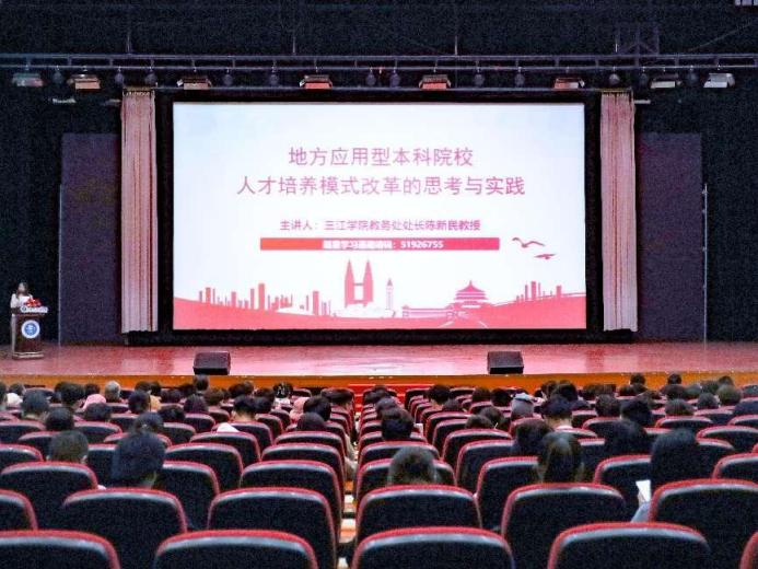 为进一步落实应用型高校建设,提升应用型高校办学水平和综合实力,10月26日,三江学院教务处处长陈新民教授应邀来Beat365作主题为“地方应用型本科院校人才培养模式改革的思考与实践”的报告。Beat365校长章梓茂、副校长赵金楼出席报告会,各学院院长、副院长、专业负责人以及部分教师代表参加报告会。会议由教务处处长田春子主持。