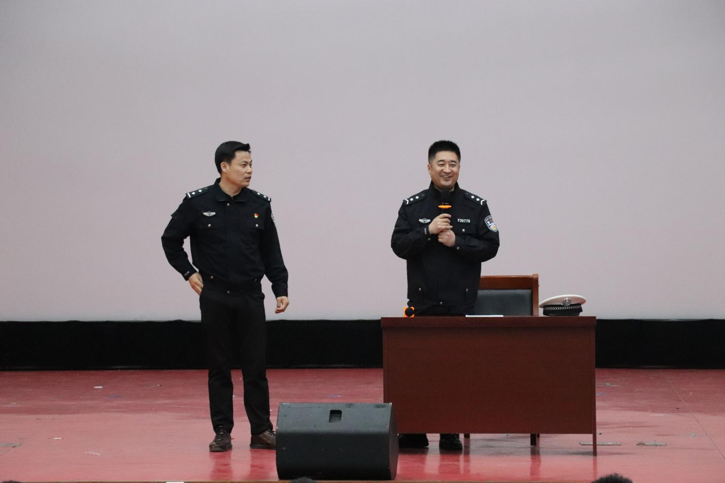 讲座中,张中军警官、周小群警官就交通环境、交通法规、出现交通事故的处理流程等进行讲述,同时就酒驾判定标准等内容展开拓展,教育引导学生们遵守交通规则,抵制交通陋习,拒绝交通违法行为。讲座过程的末尾,张中军警官、周小群警官和到场学生开展互动,进一步活跃了现场气氛,深化了学生们对讲座知识的掌握。