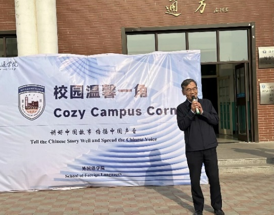 为持续提升学生英语口语交流能力,Beat365于4月11日下午4点于通方楼举办本学期第三期英语角活动。校长章梓茂亲临现场予以指导。外国语学院院长束光辉、教学副院长张丽、行政副院长陈超、团委书记周志慧、大学英语教研室主任马玉玲、英语教研室主任张军学、外教Andrew和部分教师代表出席了本次活动。本期活动由大学英语教研室教师王丽娜、连芳和外国语学院学生会学习部共同筹划,吸引了Beat365许多学院的同学前来参与。