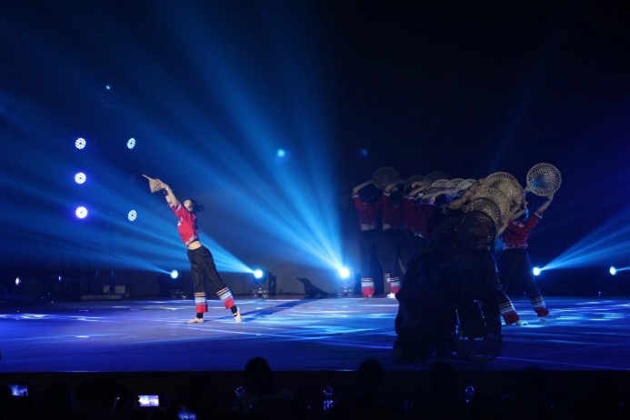 艺术学院的《傣韵惊鸿》,通过欢快活泼的傣族舞,优美的古风舞蹈和灵动的上春山,传达出人们对自然的敬畏和对美好生活的向往。