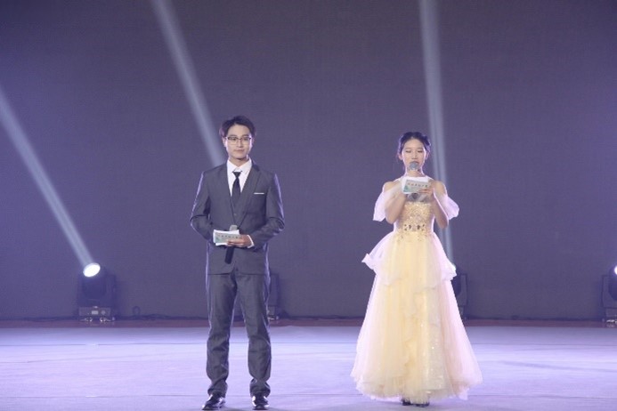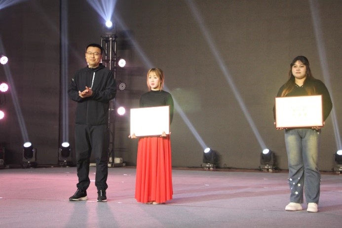 学生处副处长、校团委书记曹蒙春为三等奖选手颁奖