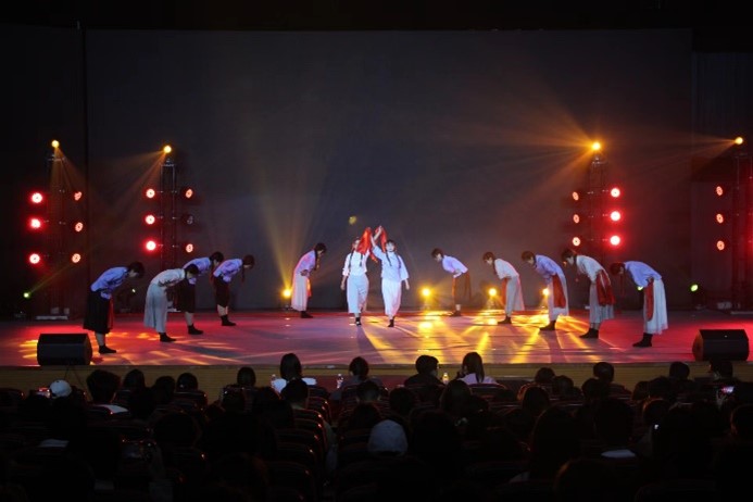 由计算机与信息技术学院带来的舞蹈《星星之火》,演员们用轻盈灵动的舞姿展现了对星星之火的生动演绎,热烈赞颂了革命先辈们的伟大红色精神。星星之火,终成燎原之势,生动展现了新时代新青年的志向之火光。