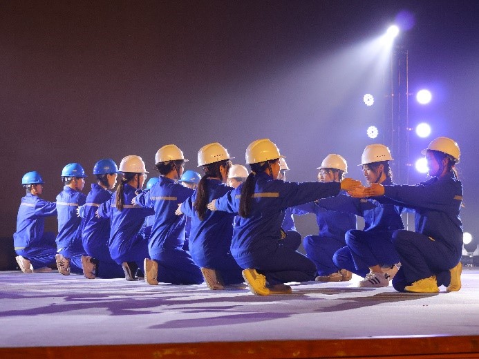 轨道交通学院带来的舞蹈《平凡的铁路卫士》,以舞台剧的形式,呈现坚守在一线的铁路工人检修铁路的画面,他们用自己的青春和热血书写了新时代中国高铁的新辉煌。