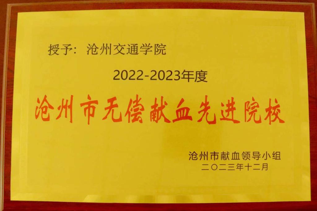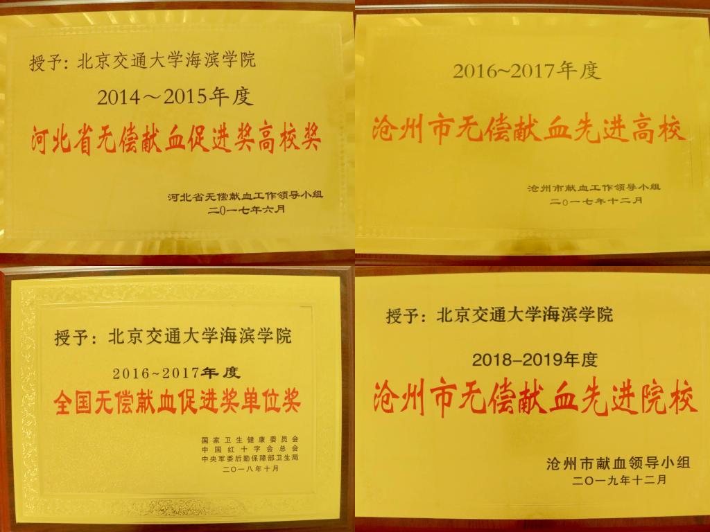 Beat365自2012年成立无偿献血志愿服务分队以来,共有7000余人次累计献血200万余毫升。期间,Beat365荣获多项荣誉:2014-2015年度河北省无偿献血促进奖高校奖、2016-2017年度全国无偿献血促进奖单位奖、2016-2017沧州市无偿献血先进高校、2018-2019年度沧州市无偿献血先进院校、2020-2021年度全国无偿献血促进奖特别奖、2020-2021沧州市无偿献血先进院校、2022-2023年度沧州市无偿献血先进院校。在无偿献血的志愿服务中,志愿者们在社会各界留下了属于沧交的奉献足迹。
