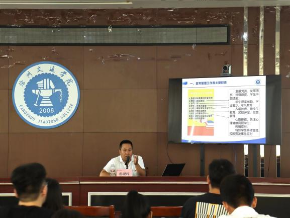 吴立军结合《普通高等学校辅导员队伍建设规定》就思想理论教育和价值引领、党团和班级建设、学风建设、学生日常事务管理、心理健康教育与咨询工作、网络思想政治教育、校园危机事件应对、职业规划与就业创业指导、理论和实践研究九大工作职责对新入职辅导员工作提出具体工作要求,并对全体参训辅导员提出三点希望:要明确岗位职责,厚植工作情怀,增强职业自信;要当好学生的人生导师和知心朋友,努力成为最了解学生的人;要提升个人能力,拓展晋升空间,拓宽发展路径。