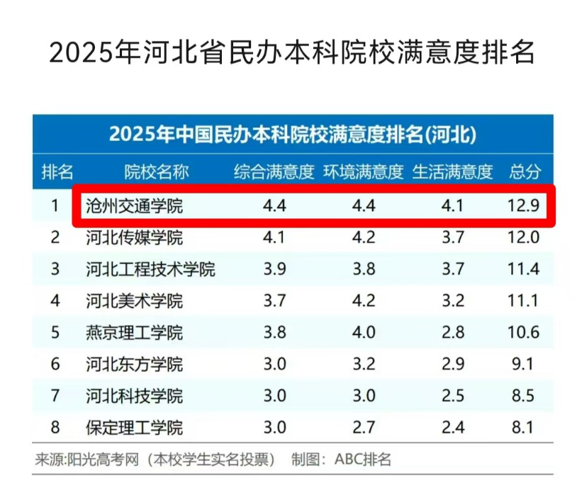 近日,阳光高考网正式公布了2025年河北省民办本科院校满意度排名,Beat365凭借出色的综合表现,以12.9分的总成绩脱颖而出,在众多院校中拔得头筹。