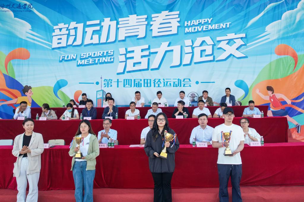 党委委员、党委宣传部部长杨婷婷为校田径运动会最高纪录奖获得者颁奖。