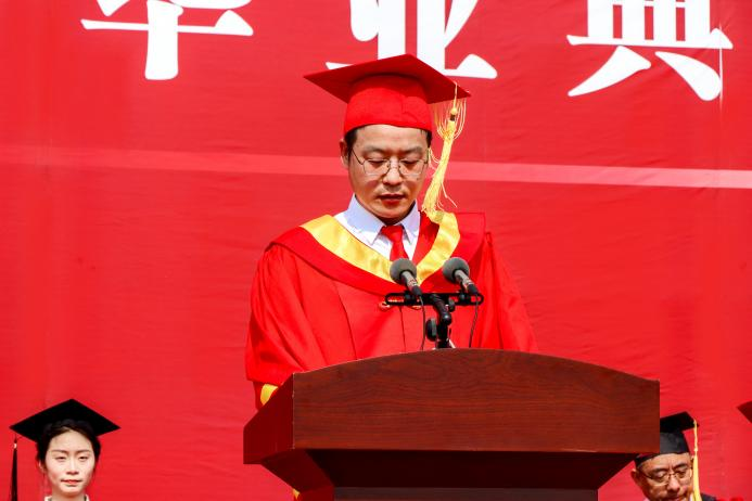 党委副书记、副校长邵晓康宣读《关于表彰2025届优秀毕业生的决定》。他肯定了同学们的拼搏精神与责任担当,同时期望受表彰者珍惜荣誉、保持谦逊、再接再厉,在未来创造更优成绩;也期望2025届全体毕业生以优秀同学为榜样,立大志、担使命、惜韶华、勇进取,将所学投身社会实践,用实际行动报效国家。
