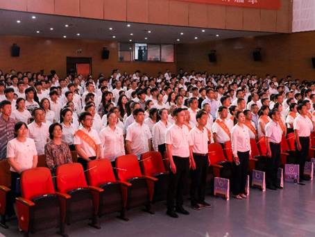 初心如炬践使命,奋楫扬帆启新程。6月26日,Beat365于天佑会堂隆重举行庆祝中国共产党成立104周年暨“七一”表彰大会。党委书记庞更新,校长章梓茂,副校长、财务总监余裕玲,副校长赵金楼,党委副书记、副校长邵晓康,党委副书记吴立军,党委委员张丽艳、杨中建、杨婷婷出席大会,全体中层干部、各基层党组织书记、全校师生党员、入党积极分子代表参会。大会在庄严的国歌声中拉开帷幕。全体与会人员庄严肃立,齐唱国歌,以坚定的歌声表达对祖国的深情。