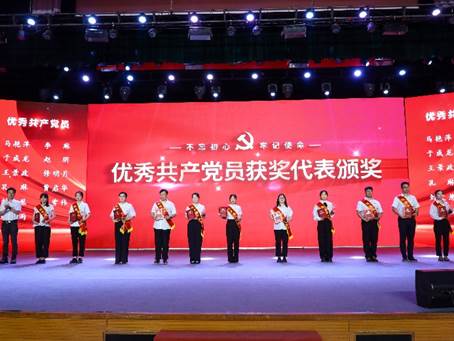 全场650名共产党员和入党积极分子共同唱响《没有共产党就没有新中国》,全体校领导、党委委员及获奖集体和个人上台领唱。激昂的歌声表达着对党的无限热爱与忠诚,抒发奋进新征程、建功新时代的豪迈情怀。