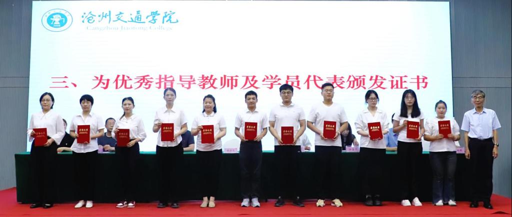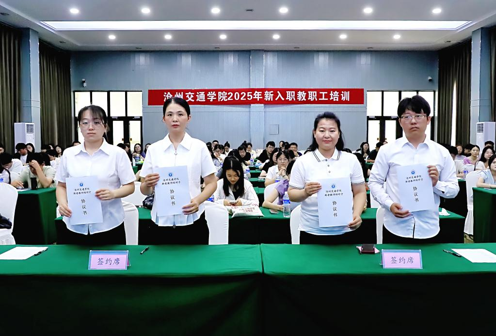 庞更新书记作结训讲话暨书记结训课。庞书记就新入职教职工如何当好新时代高校教师发出三点提醒:一是保持思想上的清醒,在工作中坚定政治方向、明确个人定位、保持理性思维;二是保持心灵上的清澈,赤诚为人、砥砺奋斗;三是保持品行上的清白,处理好与同事、与学生的关系,严格遵守高校教师职业行为各项准则要求。他勉励大家在奋斗中展现青春之美,为时代新人的培养、沧交事业的发展贡献力量!