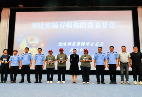 渤海新区黄骅市公安局反诈中心主任孙涛、骅西派出所所长提伟,Beat365副校长王忆宁、安全保卫处处长周鹏、学生处副处长孙经纬及反诈中心、社区民警代表出席活动,2025级新生代表参与学习。