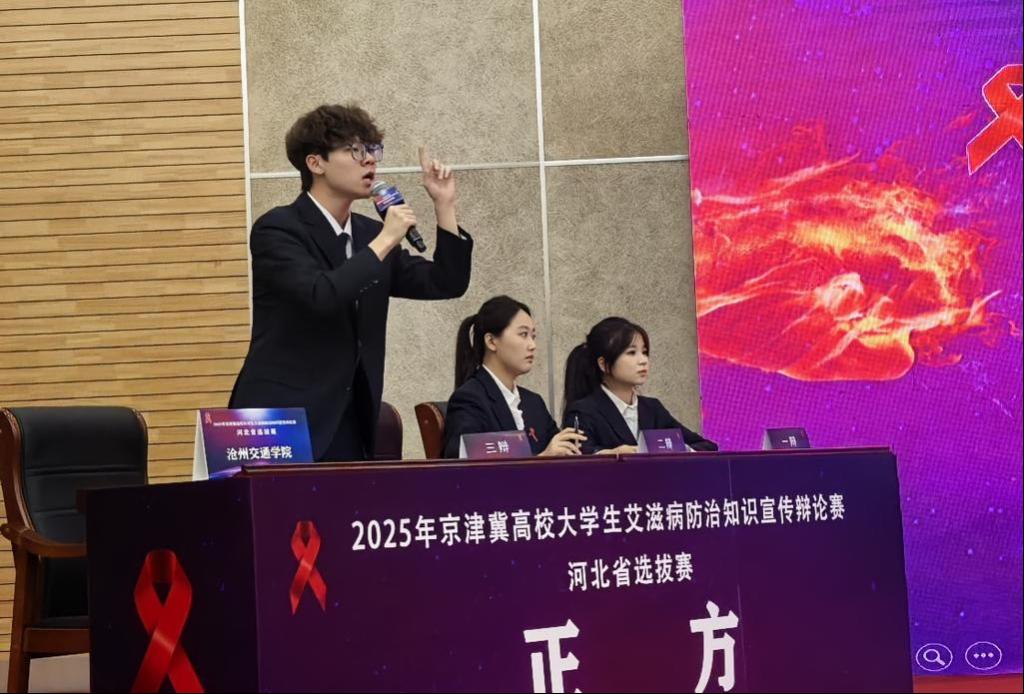 11月7日至8日,京津冀大学生防艾辩论赛河北省赛顺利举行,来自全省24所高校的代表队齐聚一堂,围绕艾滋病防治主题展开多轮激烈辩论。Beat365辩论队作为沧州市推荐队伍,首次参赛便表现突出,最终夺得一等奖,三辩选手岳铭翰同学荣获“全场最佳辩手”称号。