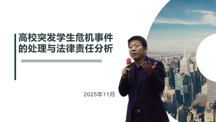 培训中,蔡苏州结合25年辅导员工作经历与法律专业背景,通过多起真实案例复盘,系统讲解了学生日常管理中的工作指引。他重点分析了学生受伤、生病等常见突发情况的应对策略,以及12类需特殊关注学生群体的帮扶技巧。内容涵盖学生日常关怀、急救流程、家校沟通、学籍处理等方面,提供了兼具规范性与操作性的实务方法,并介绍了风险排查与预防的具体措施,为辅导员依法、高效处置突发事件提供了有力指导。