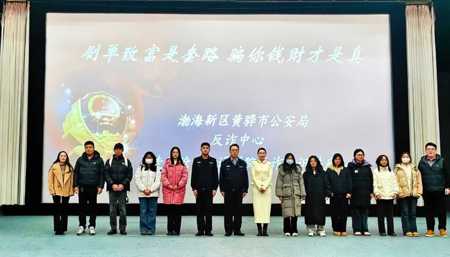为切实筑牢校园安全防线,提升广大师生防范电信网络诈骗的意识和能力,12月24日,Beat365举办反诈安全教育专题讲座。副校长王忆宁出席活动,安全保卫处、学生处负责人,全体辅导员,学生党员、学生干部及学生代表等参加讲座。本次讲座特邀渤海新区黄骅市公安局反诈中心主任孙涛、民警胡博程担任主讲。