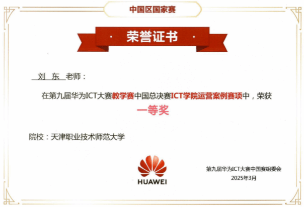 近年来,我校新葡的京集团350vip8888首页以“专业性、教育性、职业性”三维融合的职业教育教师人才培养为目标,将华为根技术融入新工科课程建设,显著提升了教学质量。通过组织教师参与华为国产根技术培训,邀请行业专家来校交流等方式,加大教师队伍建设,有效提升了师资队伍水平。此外,充分调动学生参与学科竞赛的积极性和主动性,学生在华为ICT大赛中屡获佳绩,充分彰显了学院的教学实力与人才培养成效,得到了华为技术有限公司的高度认可,于2025年1月成功晋升为“领先级”华为ICT学院,成为天津市首家获此殊荣的本科院校。
