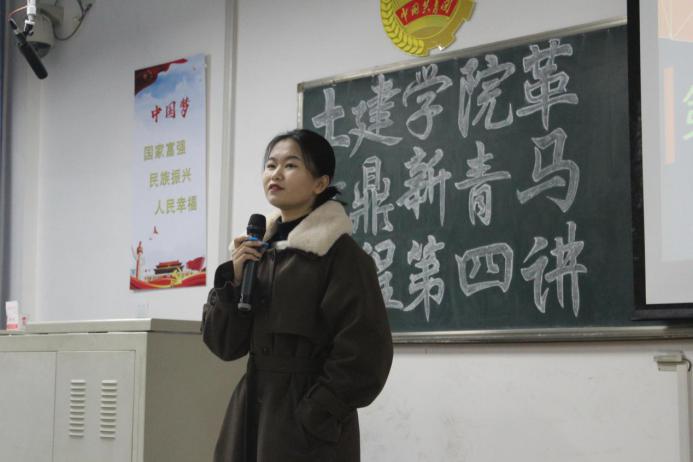 土木建筑工程学院团委副书记彭辉则教导同学们要树立正确的人生观和价值观,要不断的学习提升自己的能力,才能使自己在同龄人中更加优秀。