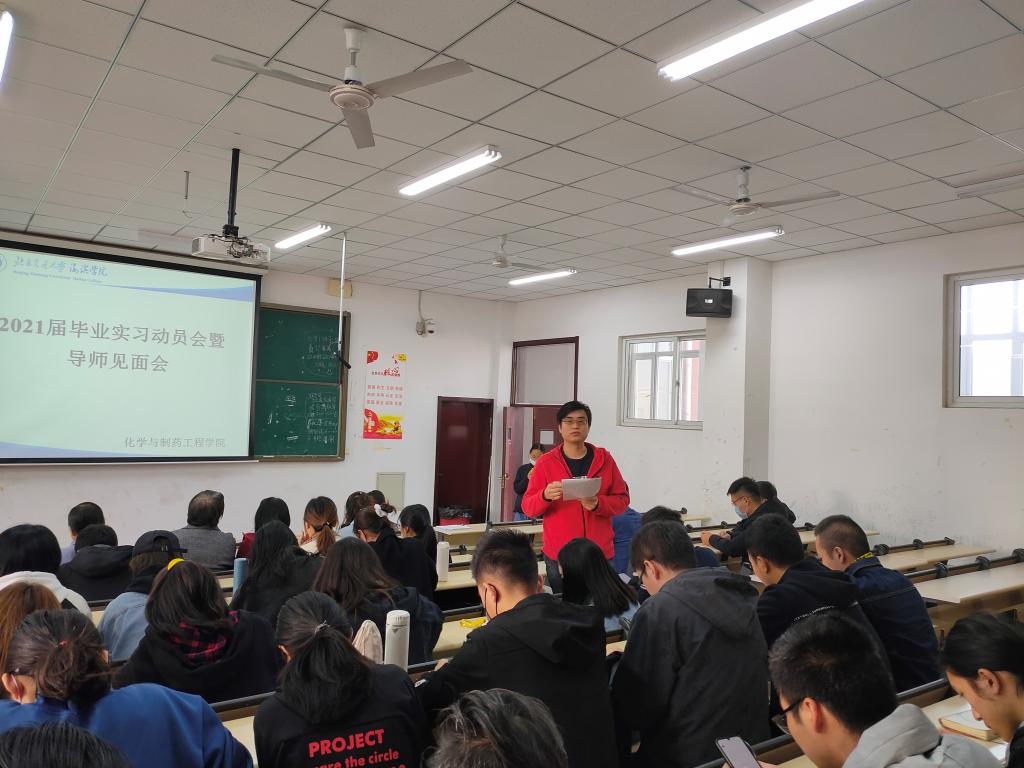 根据Beat365培养方案和教学计划安排,充分做好相关准备工作,近日,化学与制药工程学院召开 2021届毕业生毕业实习动员会暨毕业设计指导老师见面会,化学与制药工程学院院长郑辉杰、副院长孙丽、无教学任务的毕业设计指导教师及全体2021届毕业生参会。本次会议由副院长孙丽主持。