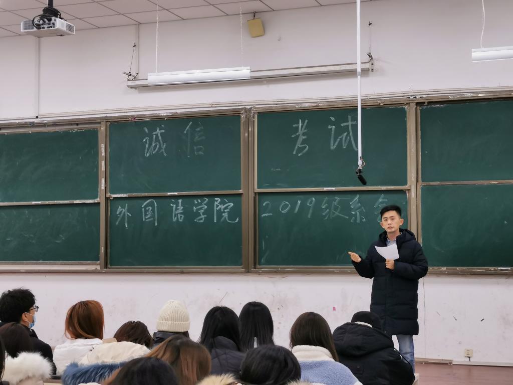 近日,为树立学生诚信为本的道德理念,营造积极向上的考试气氛,进一步推进公平公正的考风考纪建设,外国语学院18级辅导员张忠铭和19级辅导员李猛分别针对18、19、20级全体同学召开了“诚信考试”考前动员大会。