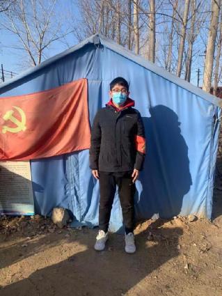 土木1704班学生田明杰负责在村口检查点登记来往车辆,核酸检测村民的基本信息登记等多项工作。他说:“我想第一时间加入到今年抗疫志愿者队伍中,决心要在这个特殊时期为家乡做点贡献。无论我的力量多么微弱,但我都会一直坚持下去,直到打赢这场战疫。”