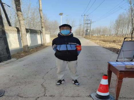 车辆工程殷嘉鹏在志愿工作中负责挨家挨户向村民普及疫情防控知识,在村口设置防控点,劝阻来往车辆减少出行等工作。