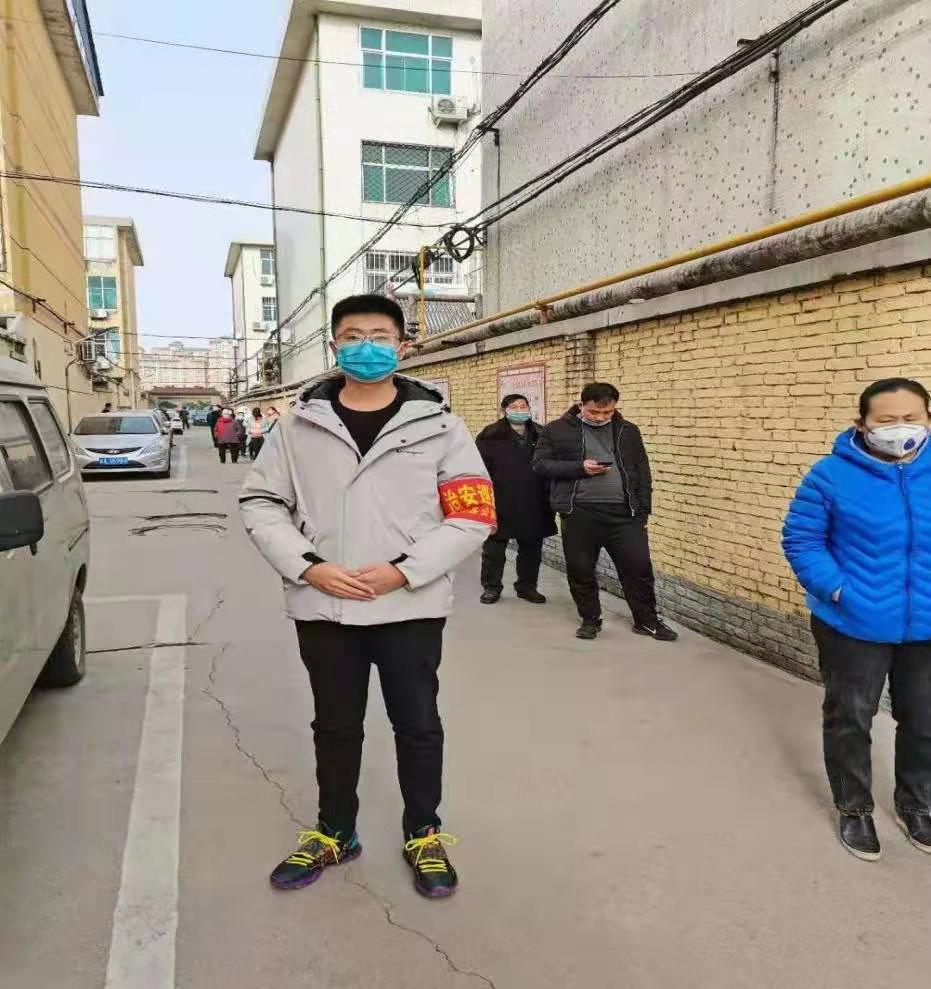 工程管理1903班杨绍杰同学自愿成为石家庄市平山县平山镇防疫志愿者。他负责社区人员出入登记,物资需求登记,治安巡检等工作。病毒凶险,他却选择冲在社区抗疫前线,为社区民众的生命健康保驾护航,用行动谱写出青春的乐章。