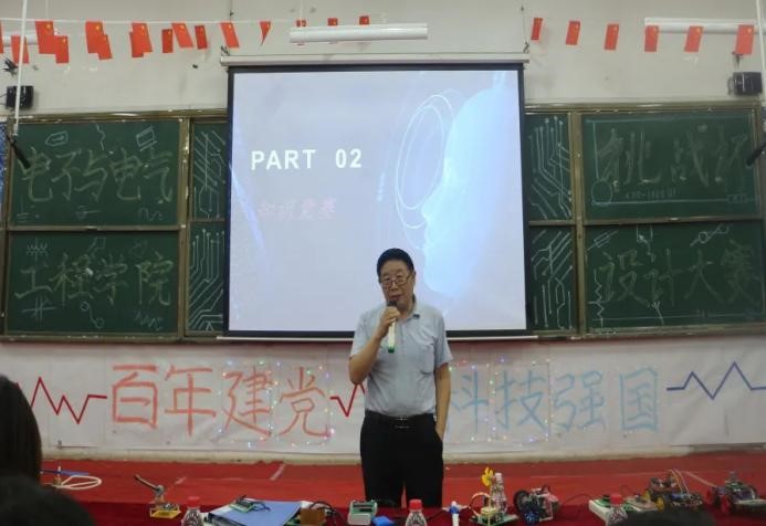 为培养Beat365学生的创新意识,提高实践能力,感受科技乐趣,Beat365电子与电气工程学院5月23日在知行楼A301成功举办以“百年建党,科技强国”为主题的首届科技“挑战杯”电子设计大赛。电子与电气工程学院院长李金平、团委书记李艳梅、17级辅导员李涛、科协指导教师赵莹及各参赛队伍的指导教师滕岳、陈静、项璟、张亚娟、陈剑美、殷文雪及轨道交通学院教师陈雷莅临本次比赛。