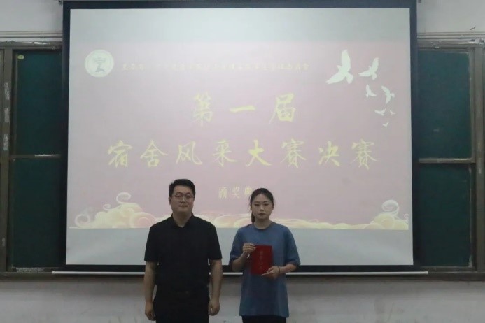 郑越老师为2#516宿舍、13#613宿舍颁发“一等奖”