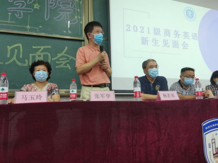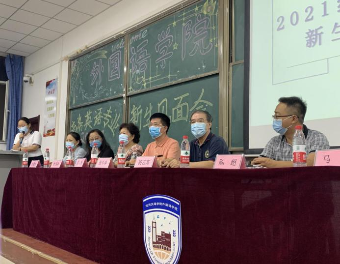 外国语学院院长杨若东、副院长张军学、副院长陈超,副教授马容、武菊元、马玉玲、张慧成,团委书记周志慧出席会议,21级辅导员、班主任、任课老师以及全体21级新生参会。